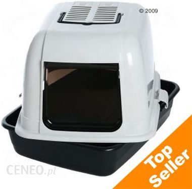 Duża przestrzenna toaleta dla dużych kotów wyposażona w filtr z aktywnym węglem i drzwiczki wahadłowe Wymiary szer. x gł. x wys. 50 x 66 x 46 cm