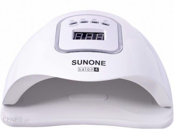 SUNONE salon4 Lampa UV LED90 WattNajnowszej generacji, profesjonalna lampa UV / LED 90W, która szybko i równomiernie utwardza wszystkie żele, lakiery hybrydowe oraz inne preparaty światłoutwardzalne.Lampa SUNONE salon4 została wyposażona w niezwykły sensor ruchu z funkcją pamięci, który zacznie działać po umiejscowieniu dłoni wewnątrz lampy. Funkcja pamięci w tym urządzeniu polega na tym, że lampa zapamiętuje ostatnio ustawiony czas pod warunkiem, że czas ten zejdzie do 0 (np. ustawiamy timer na 10 sekund, jeżeli upłynie ten czas to po ponownym włożeniu ręki lampa znowu zacznie odliczać 10 sekund). Funkcja smart sensor działa w trybach 10s, 30s, 60s oraz 99s. Funkcja ta poprawia komfort użytkowania lampy w przypadku produktów o takim samym czasie utwardzania oraz wpływa na szybkość pracy.Technologia dual LED sprawia, że lampa niezawodnie, szybko i równomiernie utwardza dostępne na rynku produkty światłoutwardzalne. Lampa emituje światło, które nie męczy wzroku. Posiada energooszczędne źródło światła o dużej mocy i podwójnym zakresie fal 365nm i 405nm.Lampa posiada aż 45 diod LED, które dają łączną moc maksymalną o wartości 90 Watt. Strategicznie rozmieszczone diody sprawią, że każde miejsce na paznokciu zostanie odpowiednio utwardzone.Czas pracy tego urządzenia przewidziano nawet do 50 tysięcy godzin. W odróżnieniu od zwykłych lamp, nie wymaga ona wymiany żarówek i jest dużo wydajniejsza.Lampa posiada wbudowany sensor ruchu, timer 10, 30, 60 i 99 sekund, a po nie wybraniu żadnego trybu świeci nieprzerwanie do 120 sekund. Tryb Low Heat Mode to tryb, w którym moc lampy rośnie stopniowo przez 99 sekund. Jest to tryb zalecany do pracy z żelami budującymi i innymi aplikacjami wymagającymi długiego czasu utwardzania.